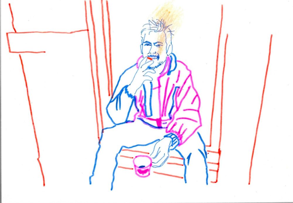 Il s’agit d’une rencontre, à travers les objets du quotidien professionnel (de la cigarette à l’ordinateur de bureau) et les gestes réalisés au travail. Lors d’une résidence à l’Atelier du coin, espace de co-working partagé par 18 architectes et designers, Belinda Annaloro photographie puis dessine les personnes travaillant au sein de ce lieu afin de réaliser un dessin animé. Derrière un regard en apparence froid, documentaire, archéologique, se cache une tentative d’entrer en contact, de créer du lien, par le biais de la création artistique. Le geste est présenté en boucle, devenant comique, presque absurde, un éternel recommencement, tel le mythe de Sisyphe.