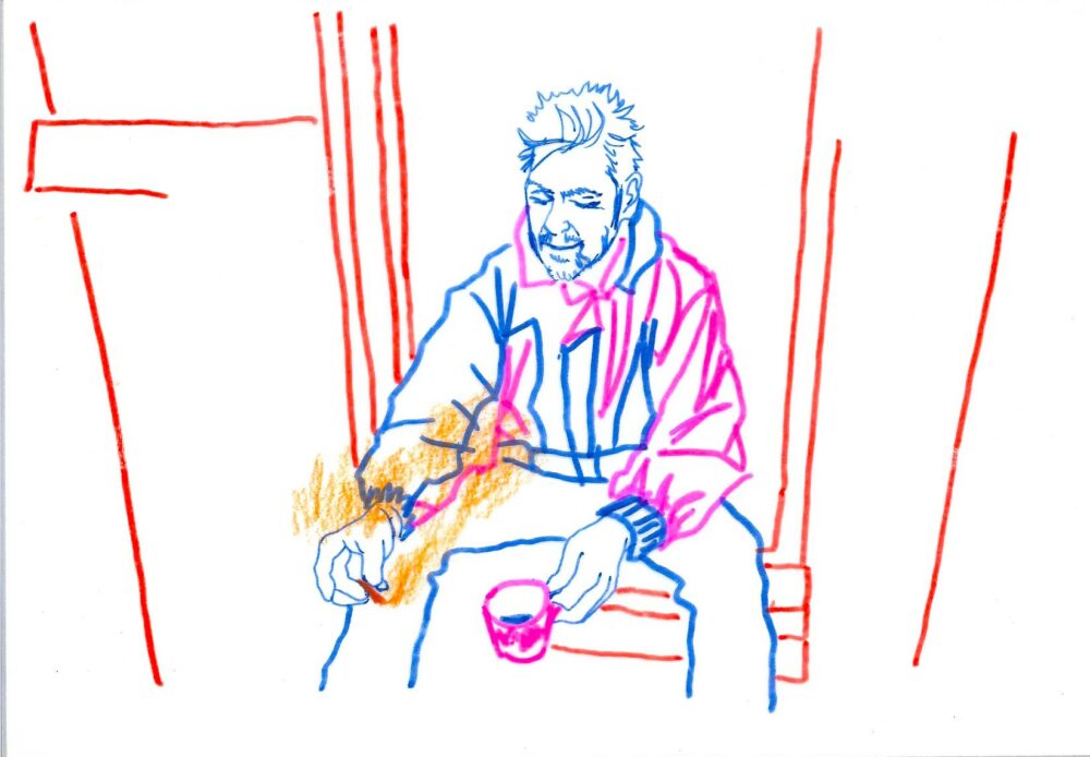 Il s’agit d’une rencontre, à travers les objets du quotidien professionnel (de la cigarette à l’ordinateur de bureau) et les gestes réalisés au travail. Lors d’une résidence à l’Atelier du coin, espace de co-working partagé par 18 architectes et designers, Belinda Annaloro photographie puis dessine les personnes travaillant au sein de ce lieu afin de réaliser un dessin animé. Derrière un regard en apparence froid, documentaire, archéologique, se cache une tentative d’entrer en contact, de créer du lien, par le biais de la création artistique. Le geste est présenté en boucle, devenant comique, presque absurde, un éternel recommencement, tel le mythe de Sisyphe.